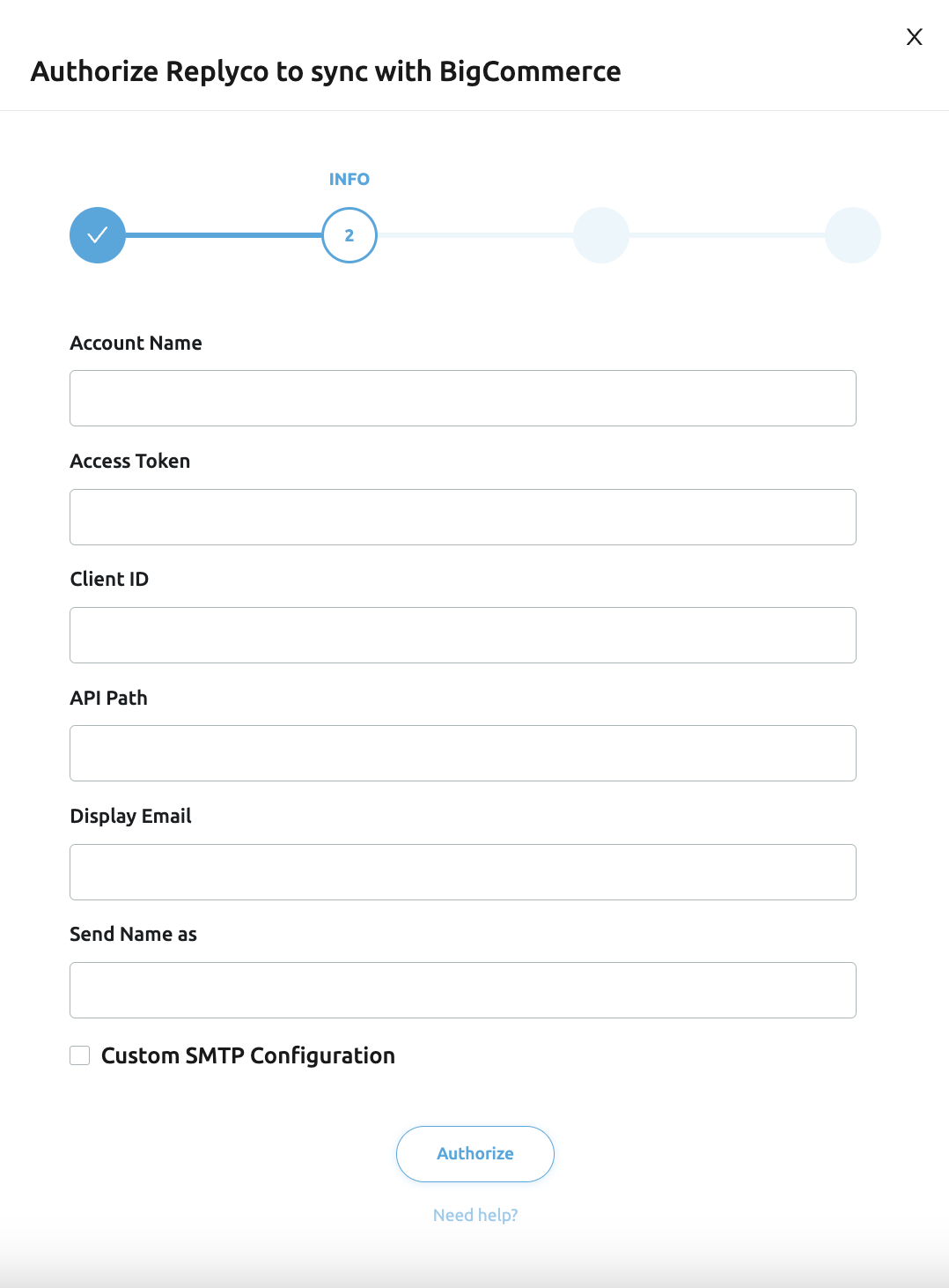 You’ll be switching between BigCommerce and Replyco to enter the required information.