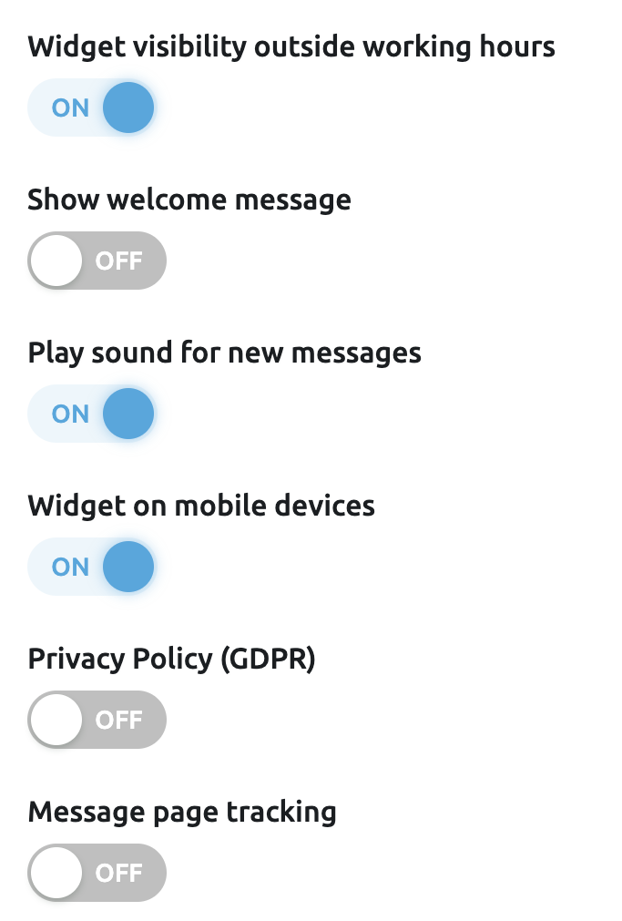 - Message Page Tracking: Toggle to display the URL of the page a visitor is messaging from.